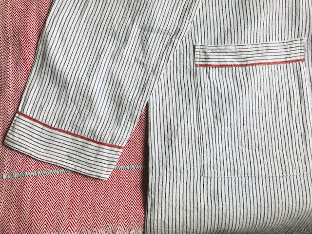 こちらはある程度厚みのある生地で、袖口とポケットにアクセントとして、赤い線が入ったデザイン。