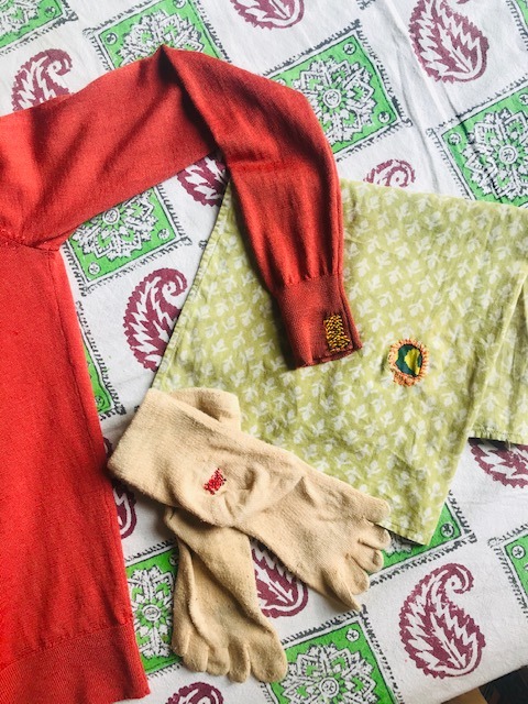 インドに戻ってきて、早速穴や磨り減りが気になっていたいくつかのアイテムにダーニング。